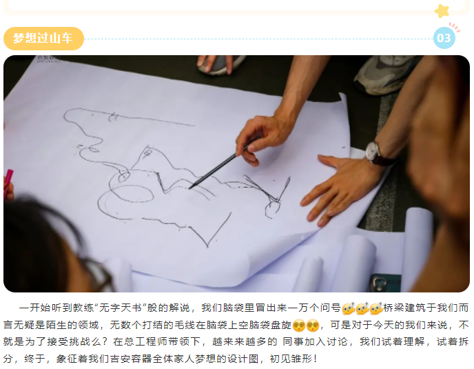 在大家合力完成这一项伟大项目的时候,更加体会到团队合作的重要性,检验过山车正常运转时,当篮球从起点缓慢运行至逐渐加速的过程中,星欧娱乐激动与澎湃之情也随着篮球的滚动而跳跃,每当“过山车”经过一道道精心设计的“关卡”,呈现出预期效果时,全体队员都会不由自主的欢呼、鼓掌!星欧娱乐内心深处感到无比自豪的成就感!