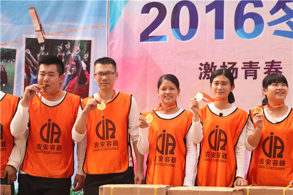 星欧娱乐容器2016年冬季运动会在快乐、励志、紧张、激烈、温馨、感动中圆满落下帷幕,每个人都得到了不同的成长,有人说:我好久没有这样那么多人一起开心的玩了,有人说:刚才我叠罐子的时候把最后2个罐子放上去看到了万众期待的眼神,那一刻我的身上有了一种叫做责任的使命感,有人说:这是我来星欧娱乐容器参加的第一次团队活动,我一开始是认为他应该是沉闷的,现在我发现它是“你开心就好”的一次活动,有人说:我今天得到了锅具三件套,这几年在公司参加的活动把家具都集齐了现在我就差个老婆了... ...我想,每个星欧娱乐人都有这样的感觉吧,星欧娱乐的每一次活动的目的,出发点都是快乐,每一个项目的设定,目的都是团结协作,共同进步,每次活动,星欧娱乐从拼搏中感受团队的力量,从失败中感悟细节的重要,从成功的喜悦中明白原来只有真心付出,才能换来最后一刻的荣耀... ...我坚信,星欧娱乐容器在星欧娱乐这支勇敢、团结、青春的队伍的努力下,会走得更远,发展的更快!