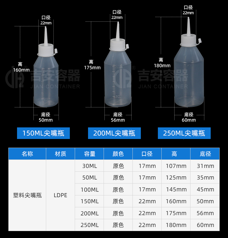 | 材质:瓶身-LDPE,瓶盖-HDPP | |