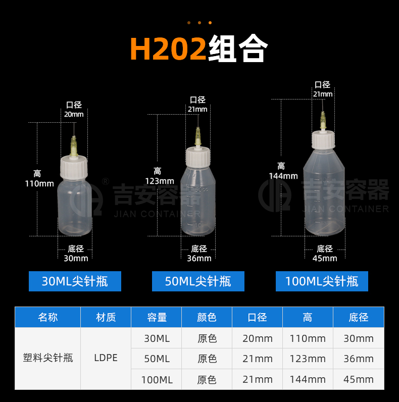 | 品名:30ml~100ml针头瓶(H202) | |