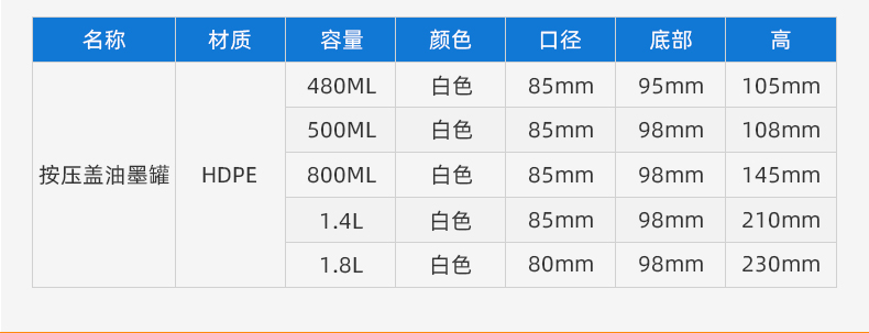| 口径:85mm/ 80mm | 容量:480ml/ 1.8L |